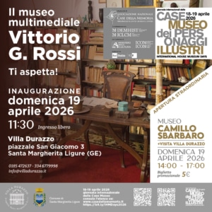 Si svolgerà domenica 19 aprile, alle 11.30, l’inaugurazione del Museo Multimediale dedicato a V.G. Rossi e realizzato a Villa Durazzo, a lato della sala che già ospita la ricostruzione dello studio dello scrittore, completando il percorso espositivo già esistente.