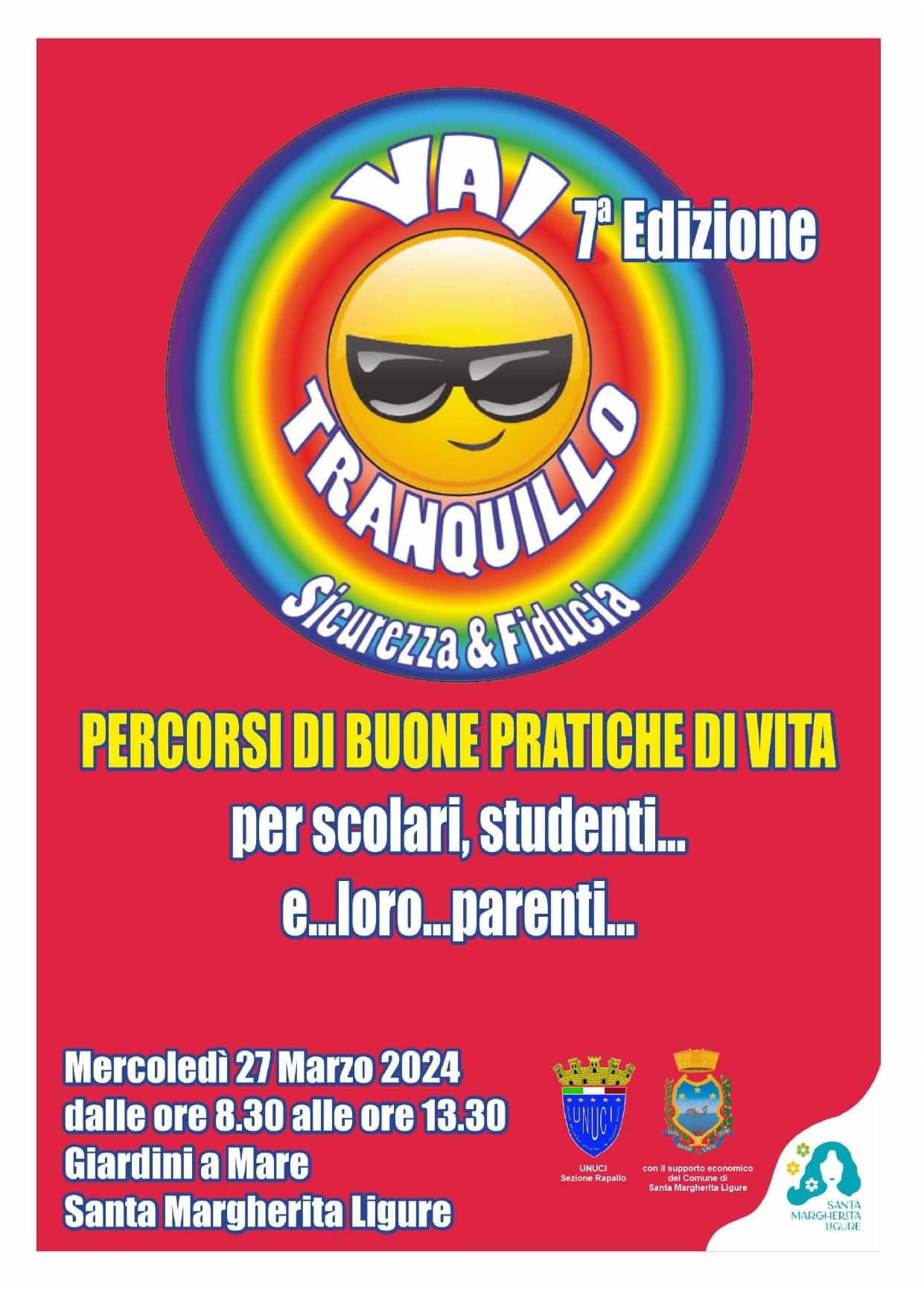 Torna nella mattinata di mercoledì 27 marzo, dalle 8:30 alle 13:30, ai giardini a mare di Santa Margherita Ligure, l’iniziativa “Vai Tranquillo!”, giunta alla settima edizione, e rivolta a bambini e ragazzi degli istituti scolastici del territorio.